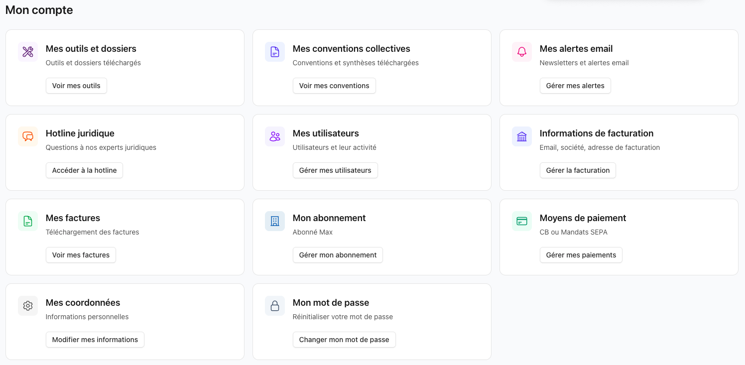 ↪ Accès facilité à vos services clés : Nos services liés au CSE, notre hotline juridique et nos services RH personnalisés sont regroupés dans une rubrique unique et identifiable.